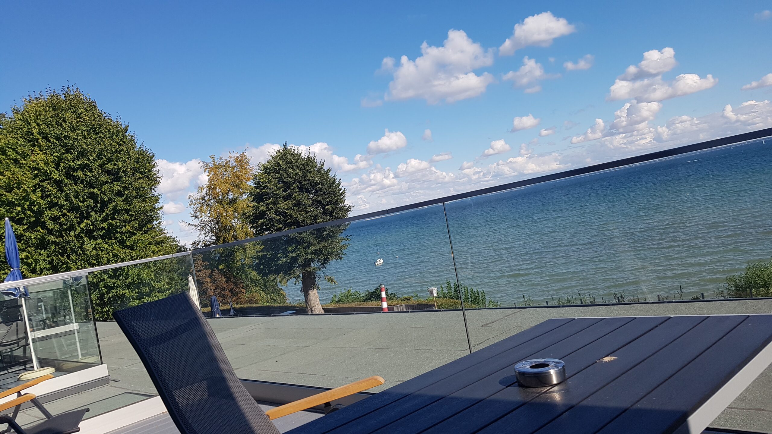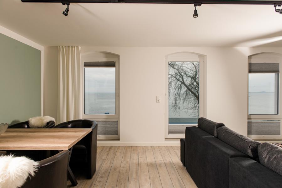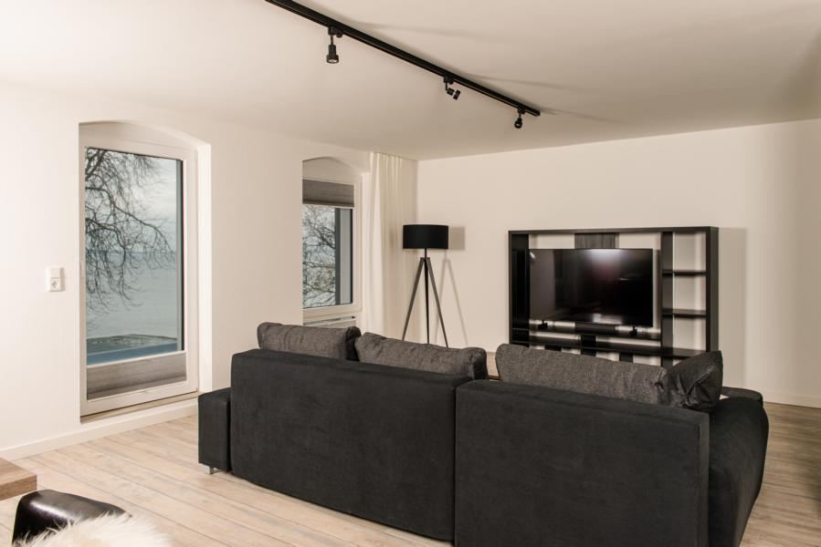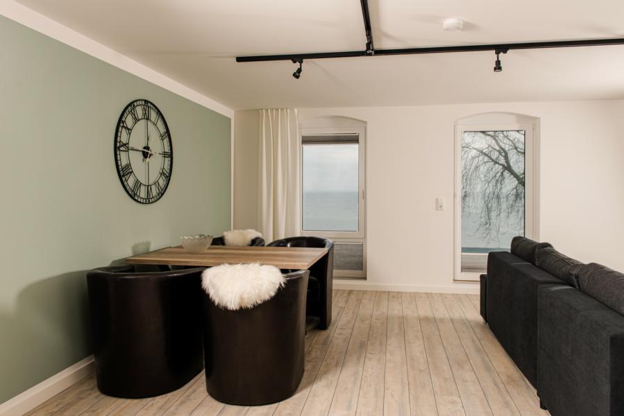 70m² Panorama-Meerblick-Appartment mit 12m² großer Glas Dachterrasse im Obergeschoss.