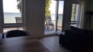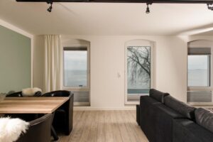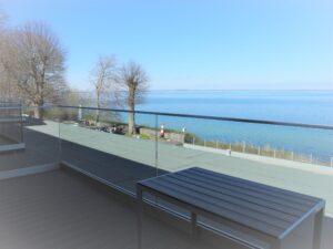 70m²  Panorama-Meerblick-Appartment mit 12m² großer Glas Dachterrasse im Obergeschoss.