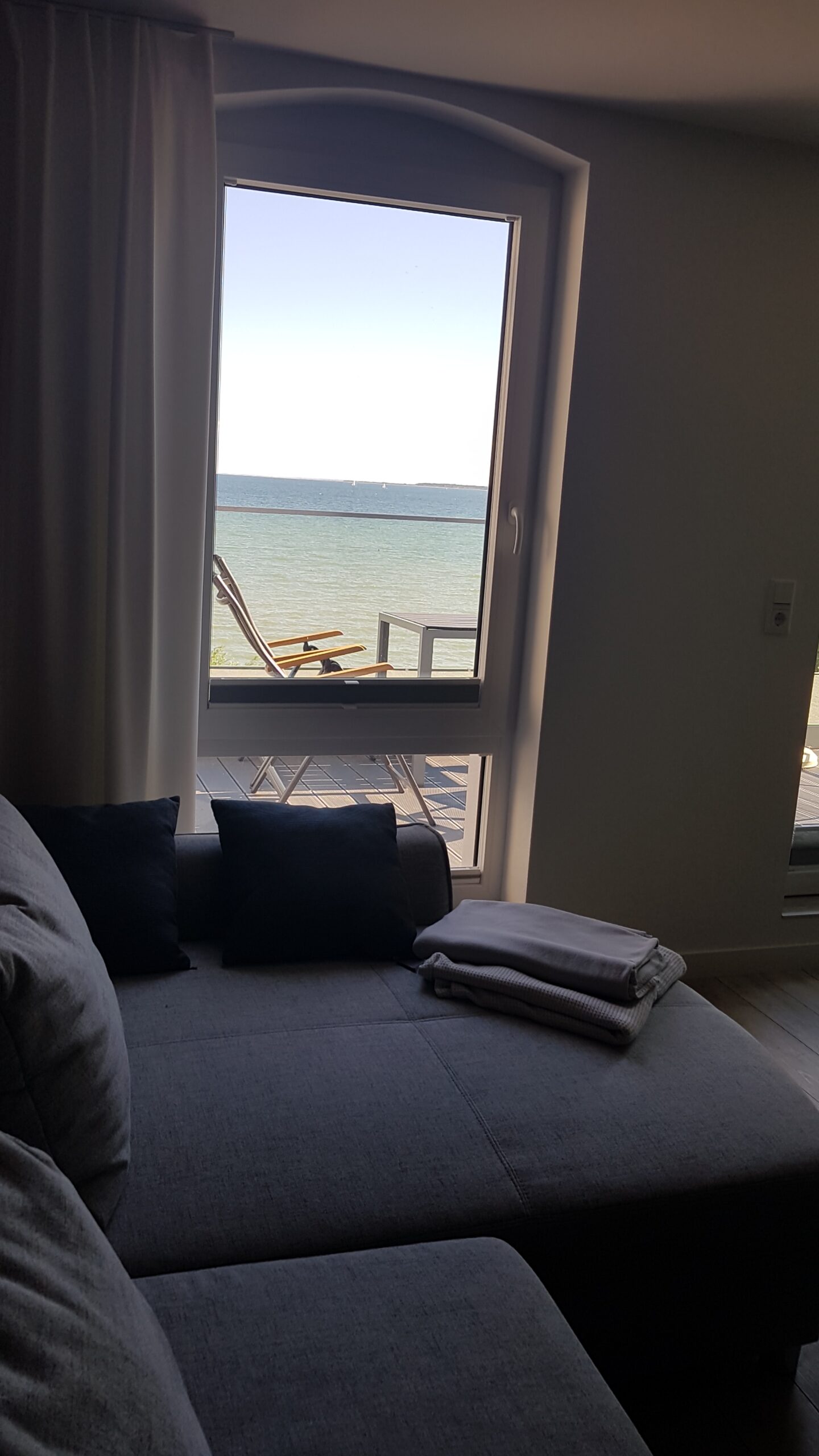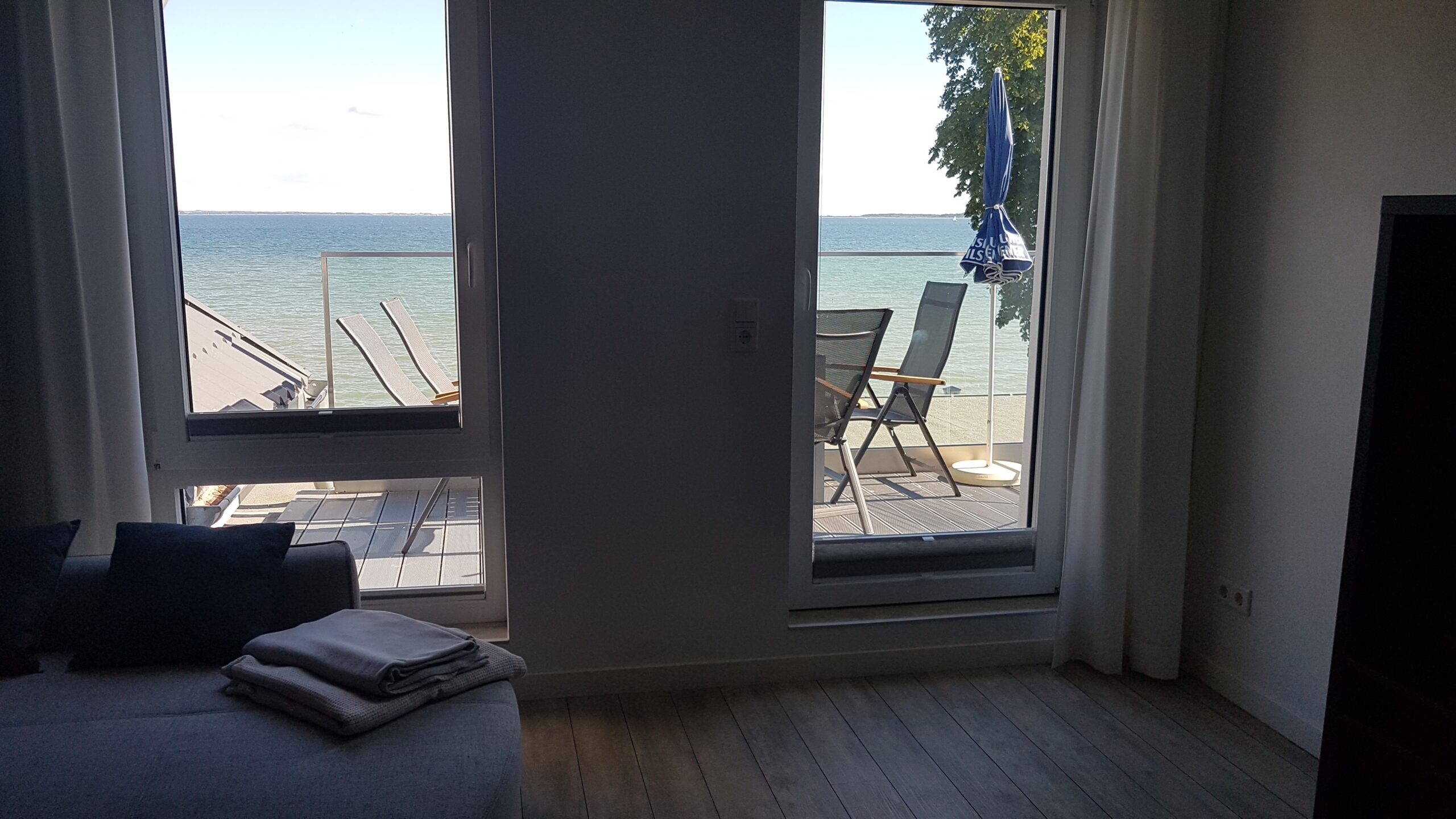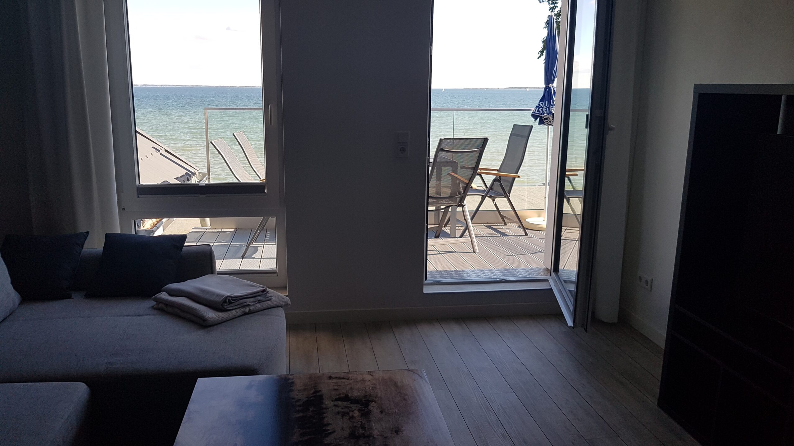 70m2 Panorama-Meerblick-Appartment mit 12m2 großer Glas Dachterrasse im Obergeschoss.