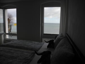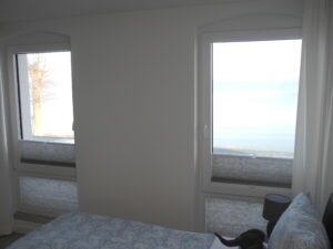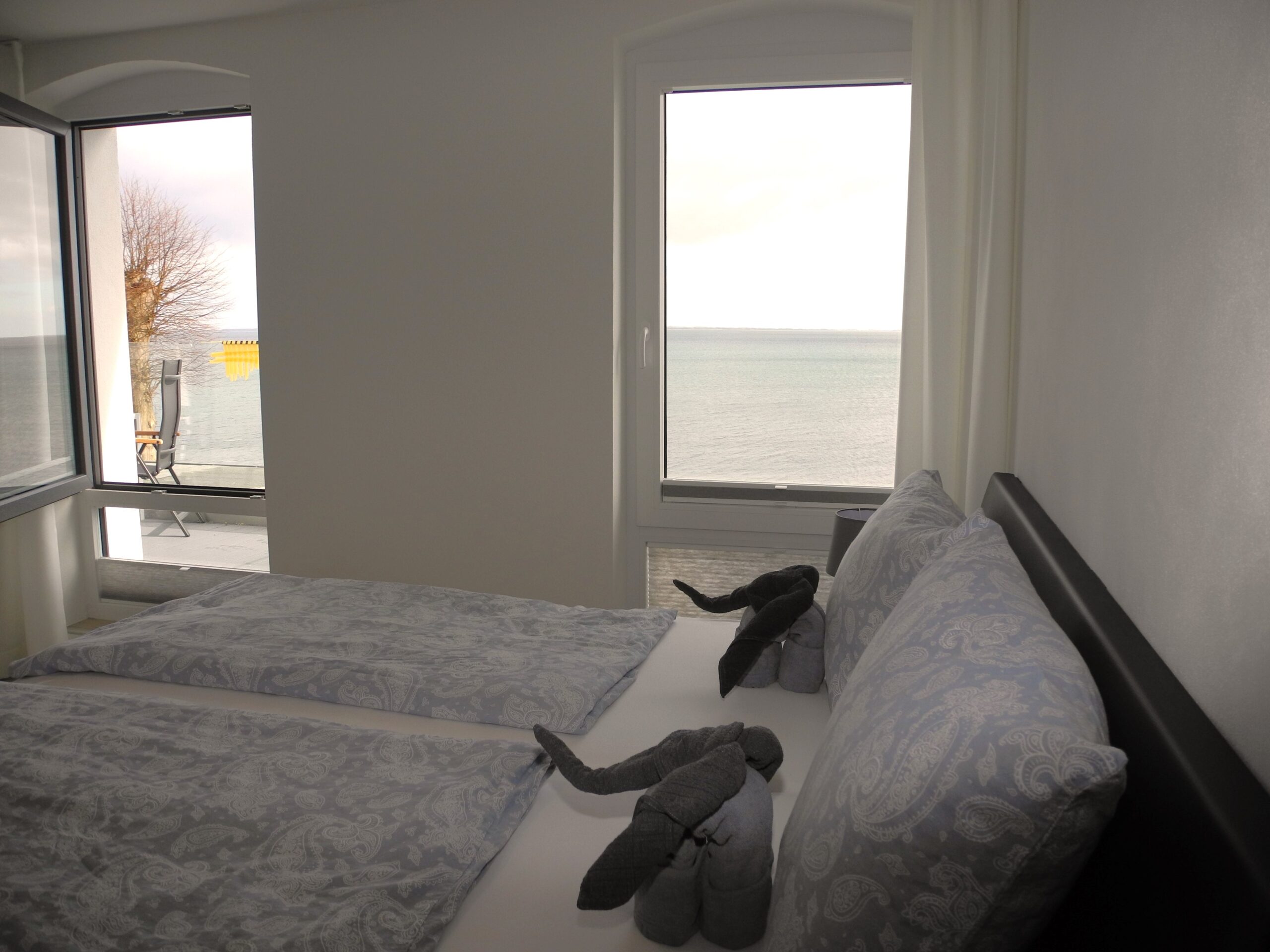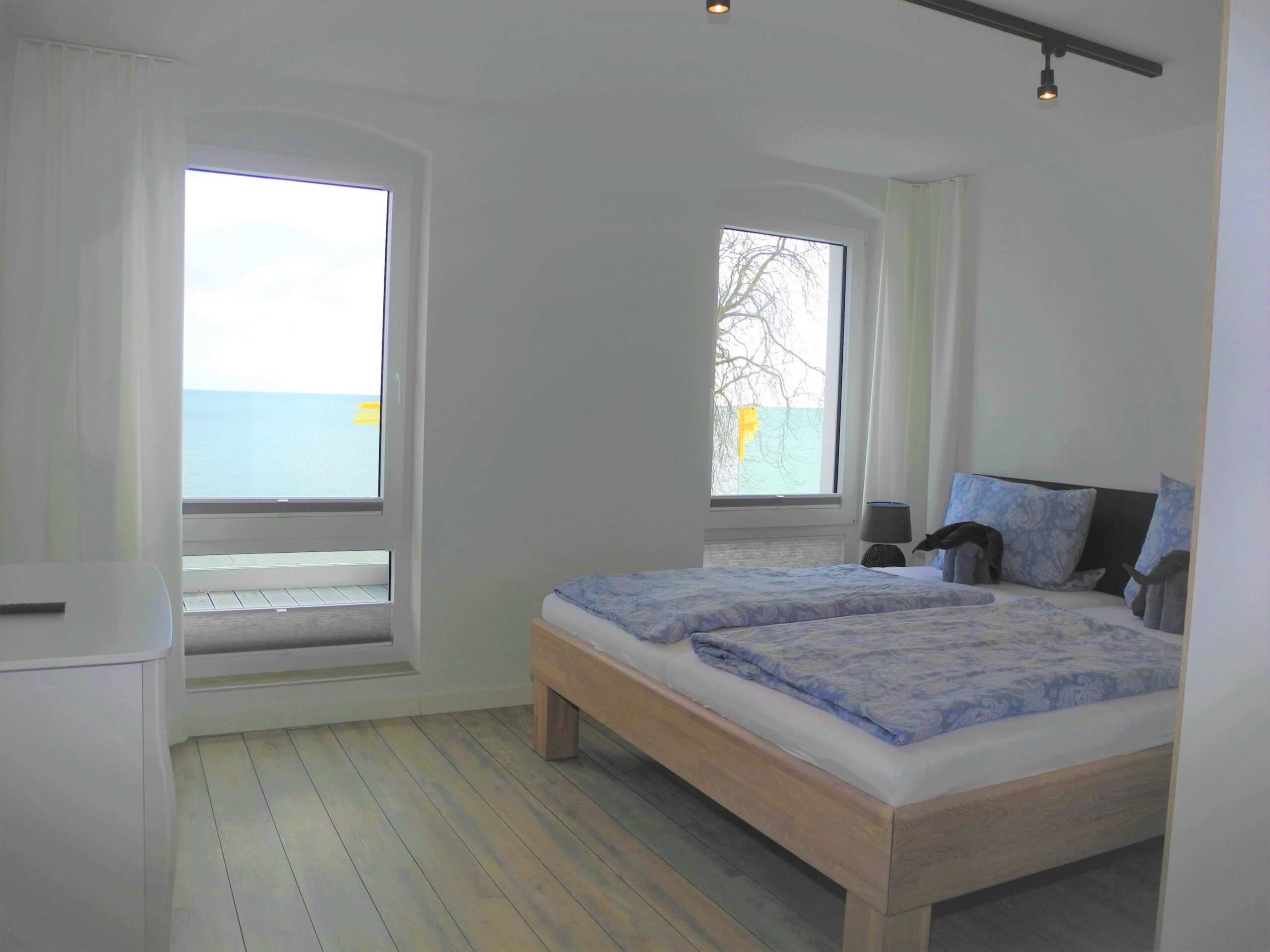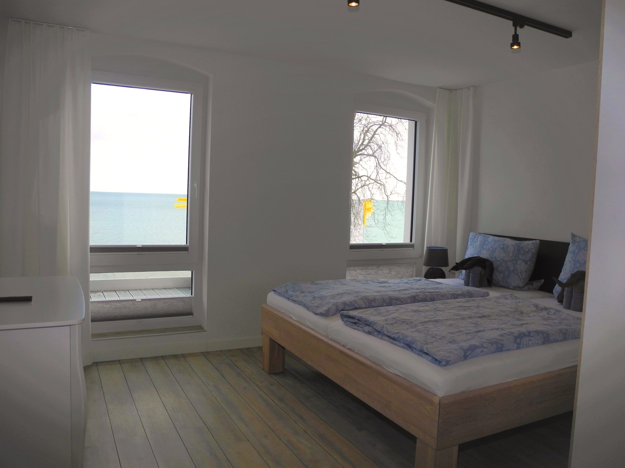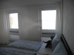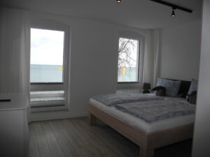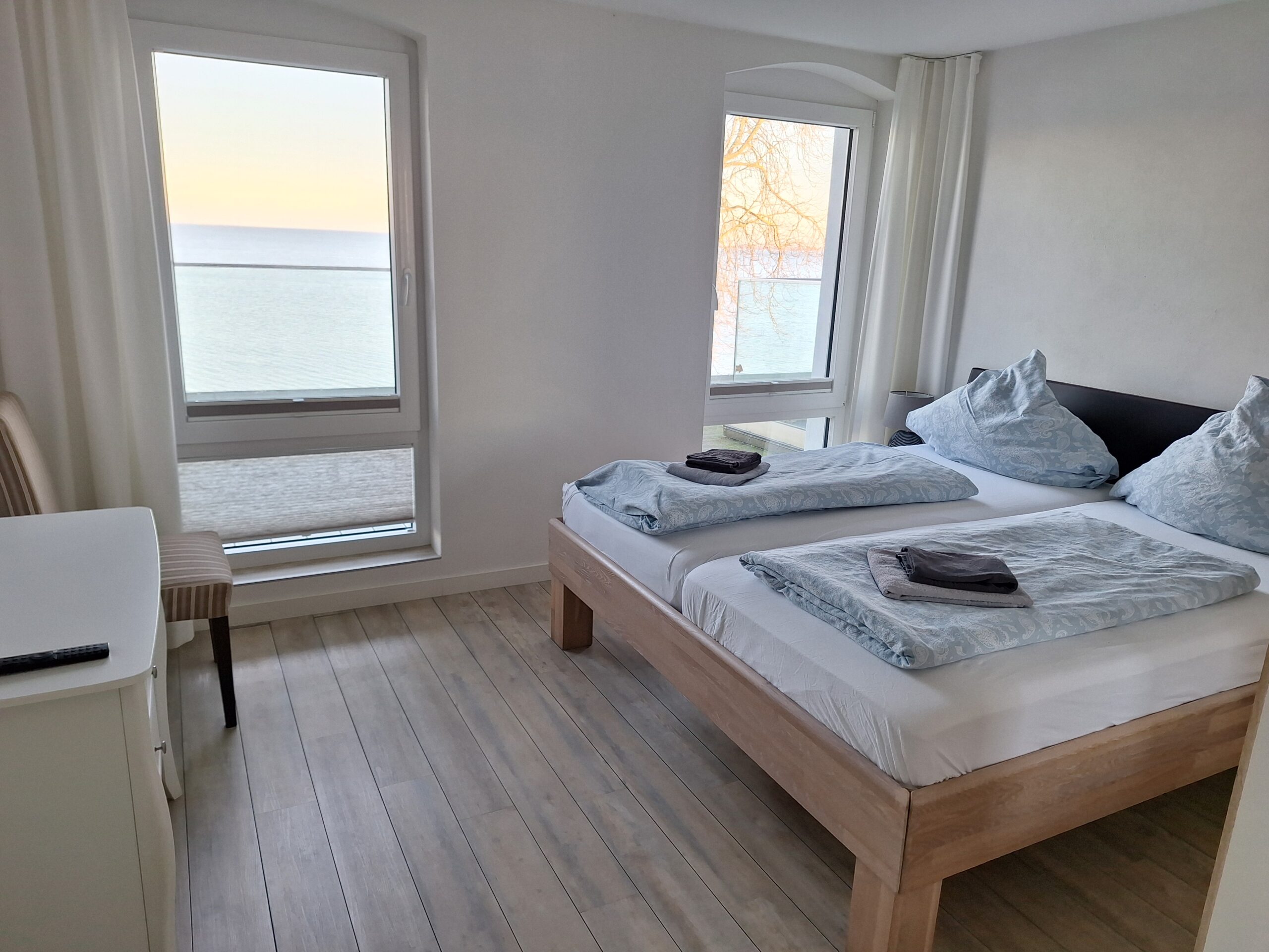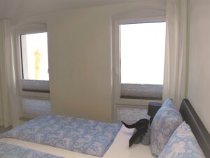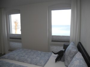 - 1 Schlafzimmer mit Meerblick, Doppelbett 2x2m ohne Fußleiste mit separaten, getrennten Matratzen