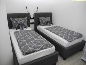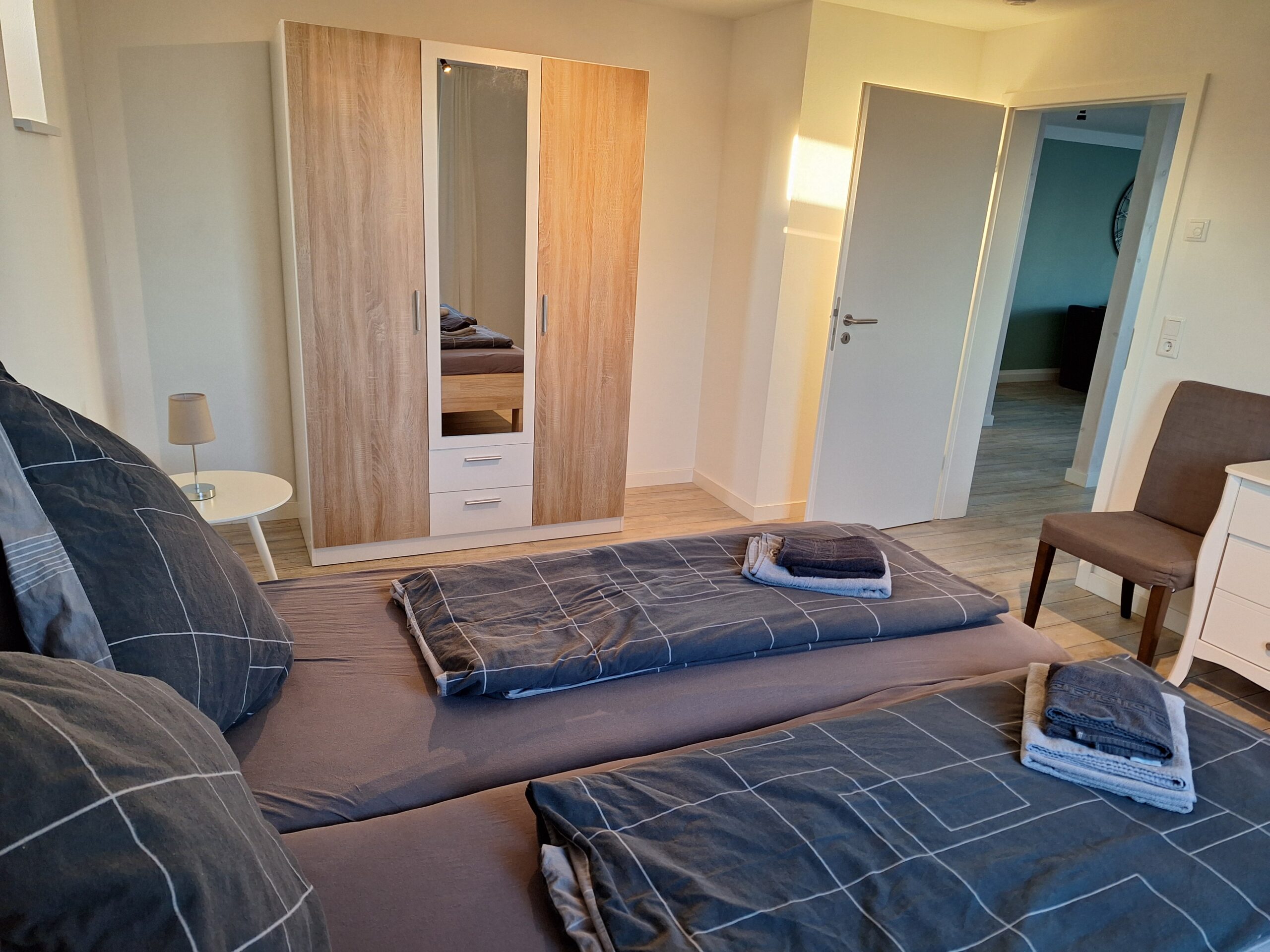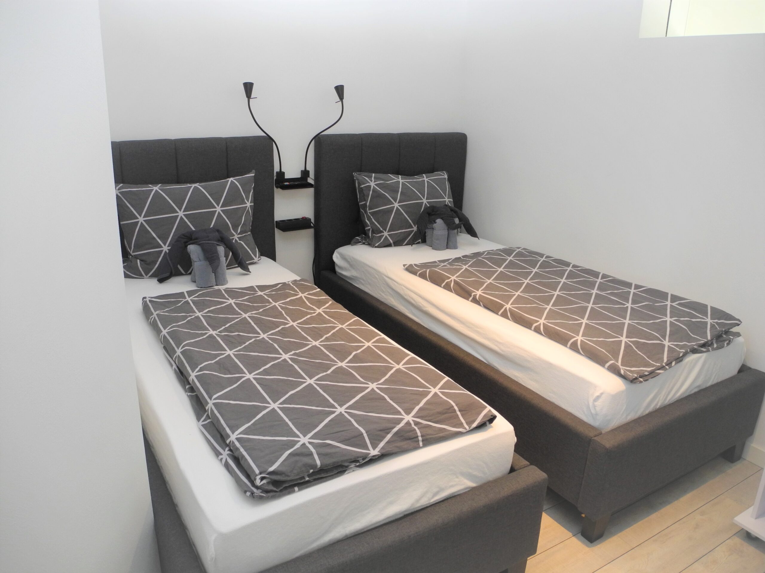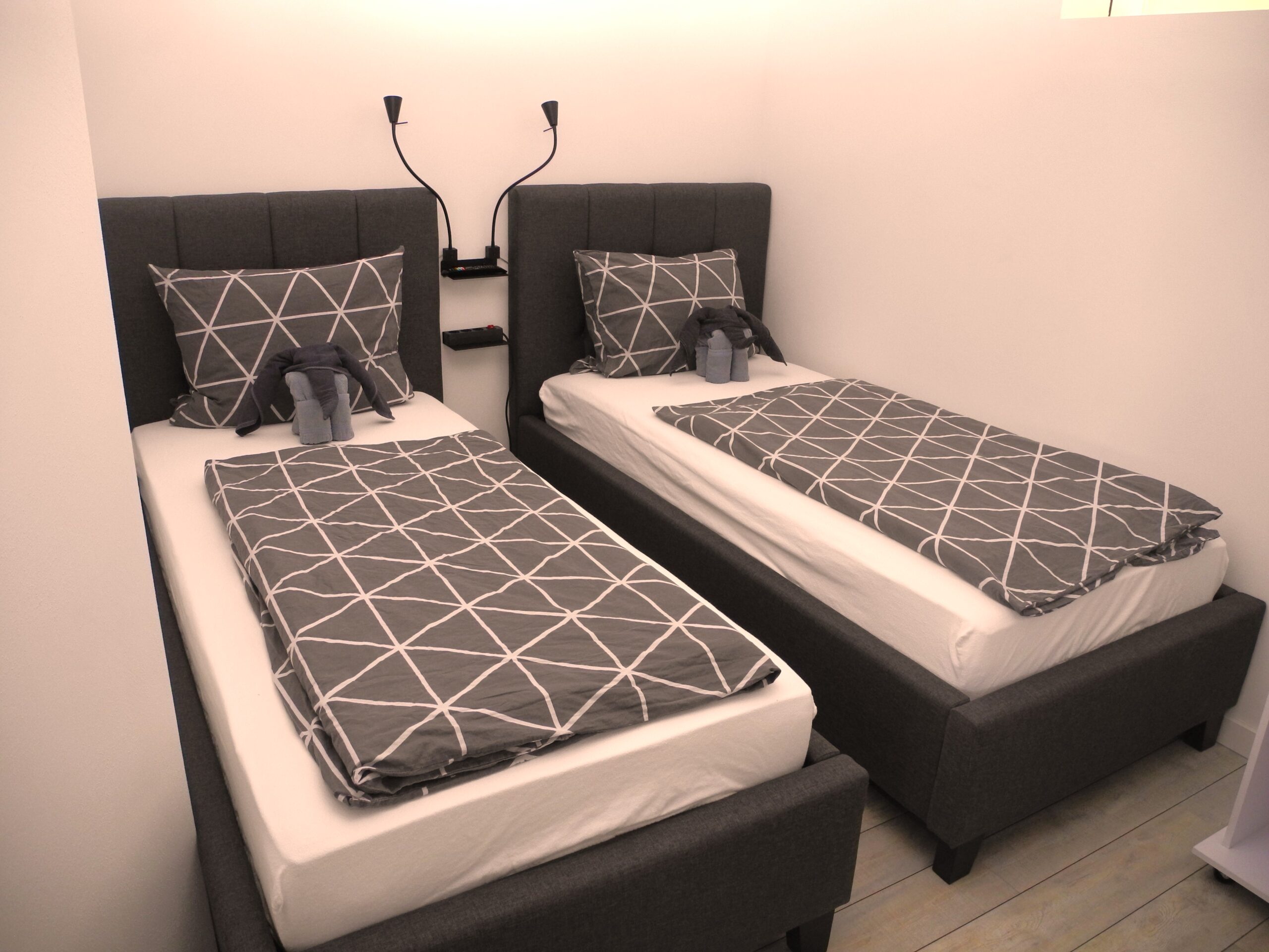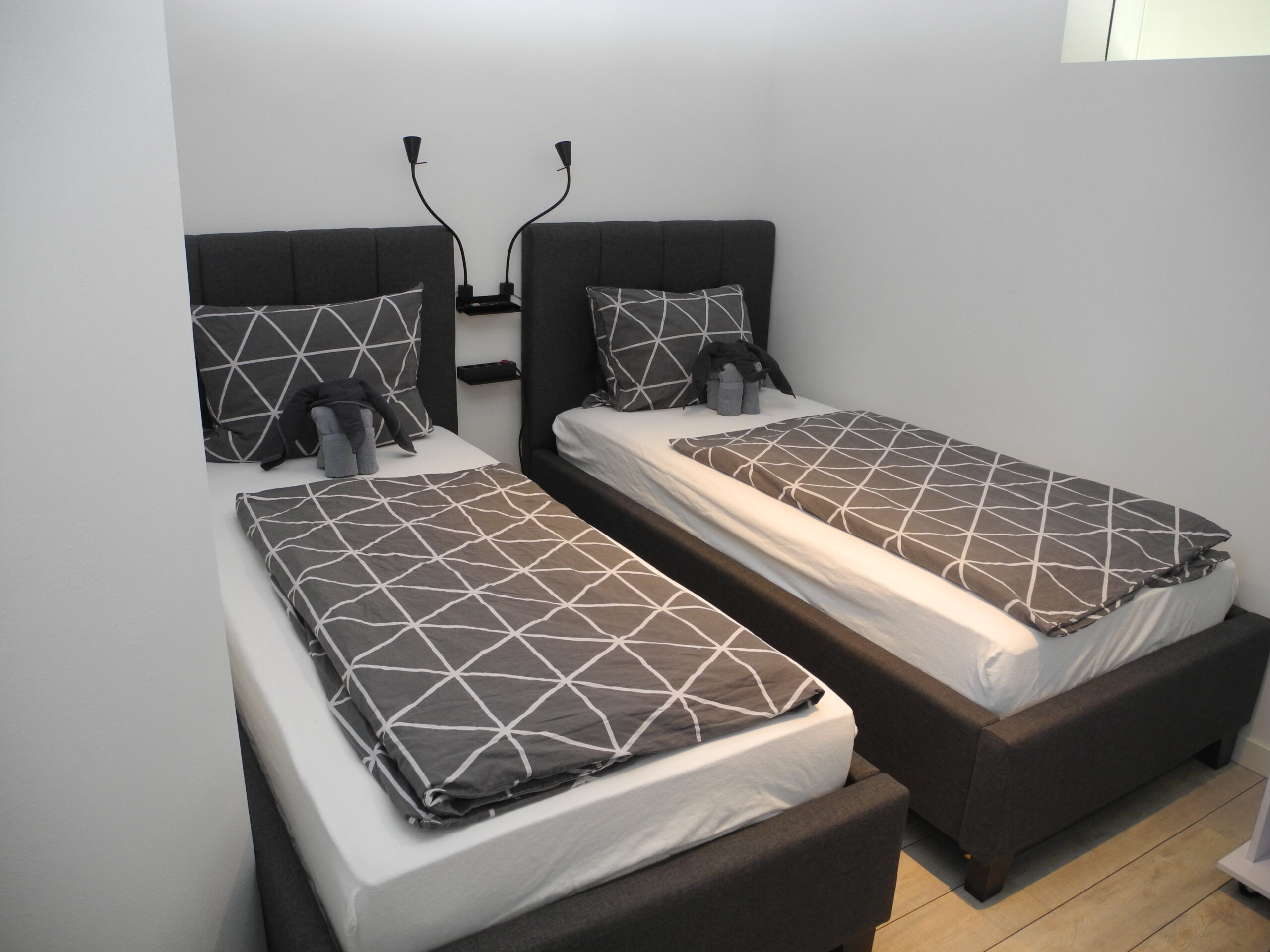 - 1 Schlafzimmer innen liegend mit zwei getrennten 90x200m Einzelbetten