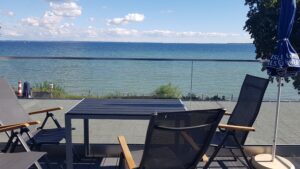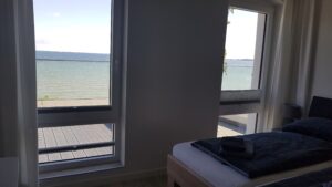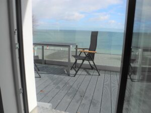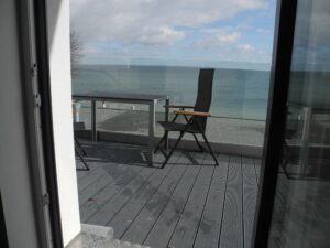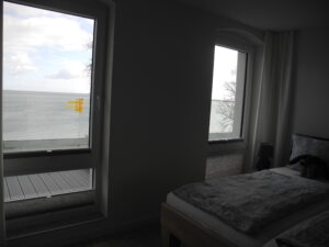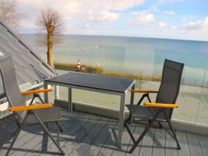 70m2  Panorama-Meerblick-Appartment mit 12m2 großer Glas Dachterrasse im Obergeschoss.